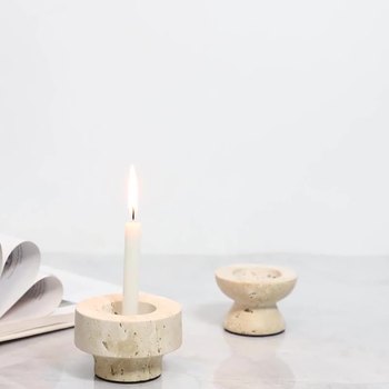 Moderno minimalista naturale giallo travertino portacandele ornamento decorativo per soggiorno, tavolo da pranzo